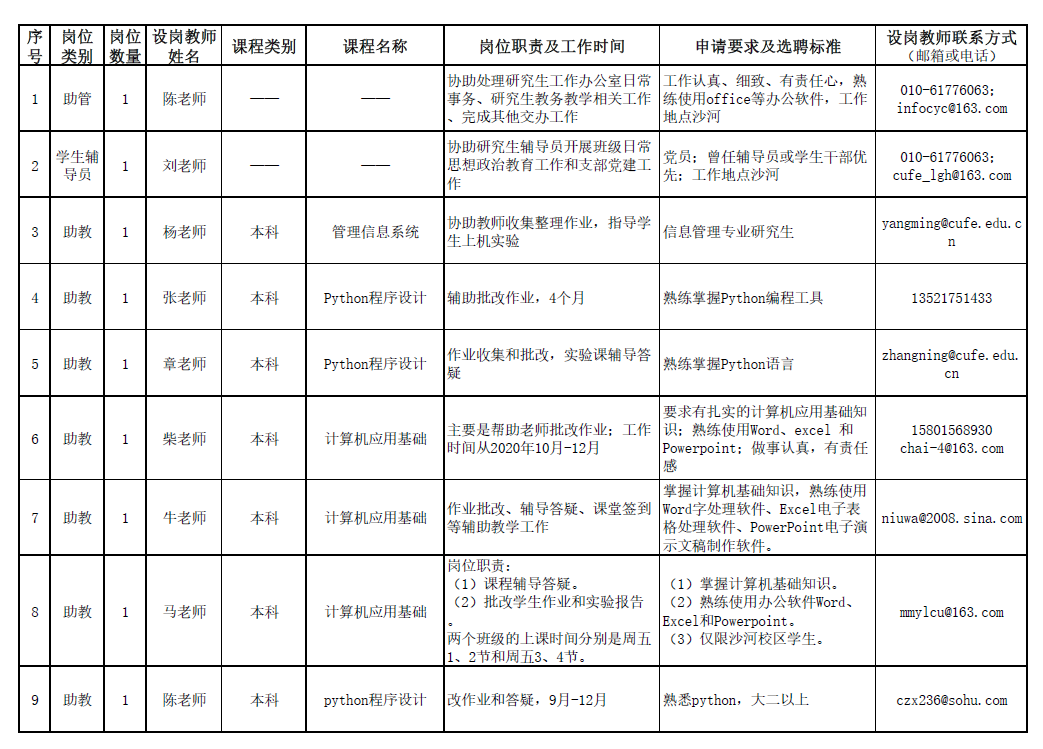 【三助一辅】太阳集团tyc5392020-2021学年第一学期“三助一辅”设岗需求