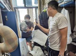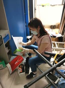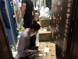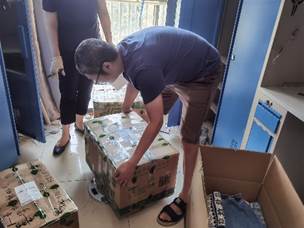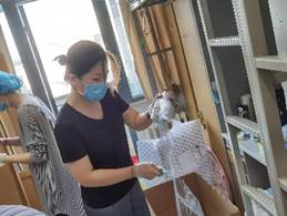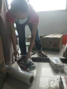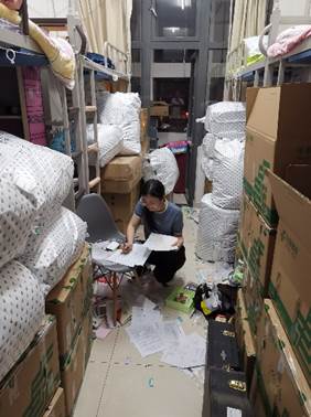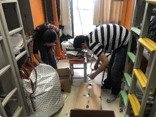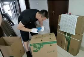 王卯宁老师精心与员工沟通,归置装箱物品 李雪峰老师精准高效组箱完毕