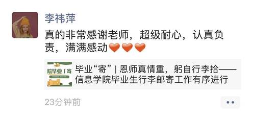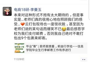 纵然相隔千里,虽隔屏幕内外,但师生们的心从未分离。寄出的是行李,收获的是青春,一份份行李承载着浓浓的师生情和沉甸甸的太阳集团tyc539时光回忆。