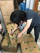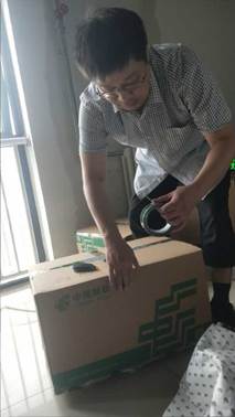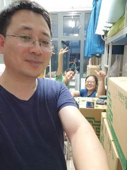 牛娃老师搬箱初步评估是否超重 刘灿涛老师封箱 陈晓露老师填写工作转单