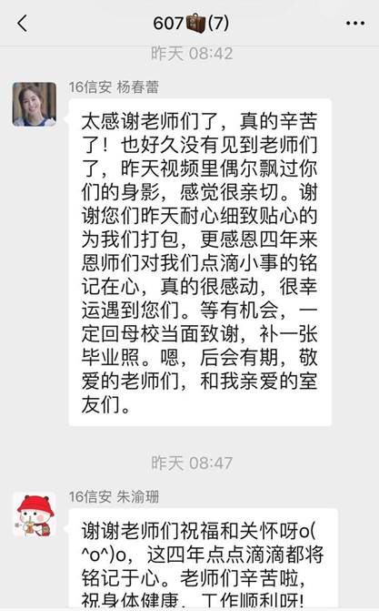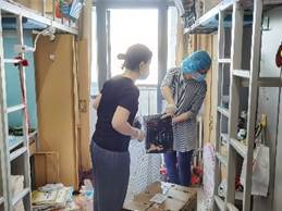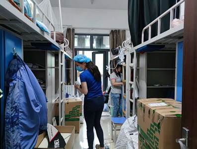 那些在讲台上答疑解惑的教授们,那些在课堂上严谨教书的园丁们,那些在课堂外默默付出的老师们,如今在员工宿舍里来回穿梭,身体力行上了一堂行走的毕业大课,将还没来得及说出口的祝福和叮嘱装进行囊,送往员工身边。