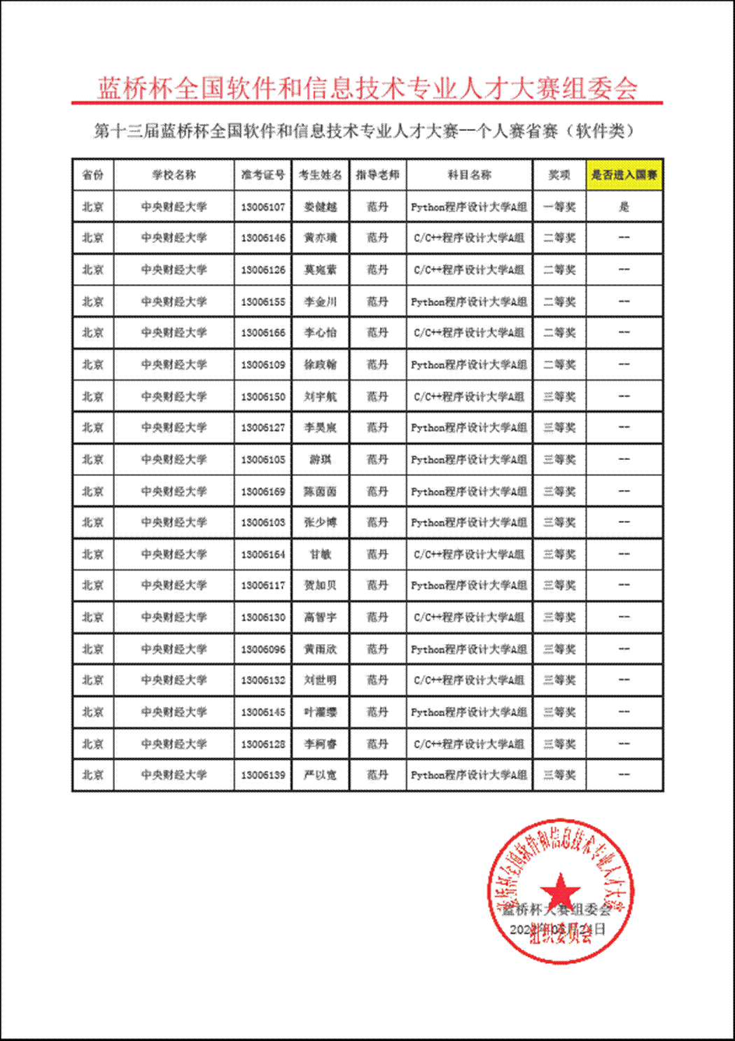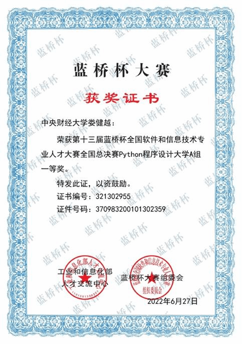 由工业和信息化部人才交流中心举办的第十三届蓝桥杯全国软件和信息技术专业人才大赛(以下简称“蓝桥杯大赛”)已于2022年6月18日落下帷幕。蓝桥杯大赛分为省赛和全国总决赛两阶段,公司共50名学子参加了本届比赛。在太阳集团tyc539范丹老师的指导下,共有19名学子斩获北京市一、二、三等奖,其中一等奖选手太阳集团tyc53919级本科生娄健越入围全国总决赛,并最终喜获全国总决赛一等奖。