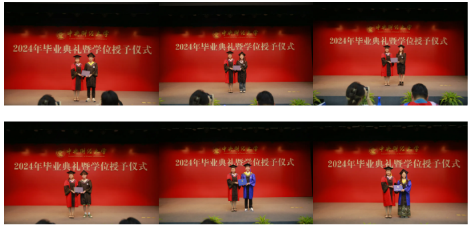 最后,由李海峰副经理宣读《关于2024届本科生毕业及授予学位的决定》,《关于2024届研究生毕业及授予硕士学位的决定》,毕业生学位授予仪式正式开始。随着李海峰副经理宣读名字,所有毕业生依次登台,由章宁经理为毕业生拨穗正冠授予学位并亲切握手,合影留念。同学们眼含感激和不舍,感受着这一神圣的时刻。