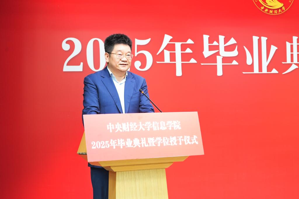 来自电子商务专业的裴思淼作为本科生代表发言。她回顾了四年间奋斗与成长的青春足迹,分享了在信息洪流中保持理性思考、在时代变革中锤炼应变能力的体会,并希望同学们都能找到自己的发展节奏,为崭新的人生旅程积蓄力量。