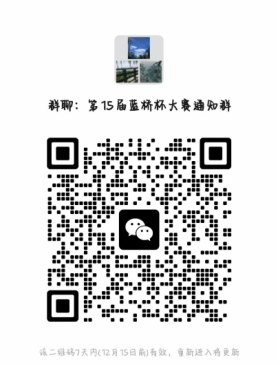 注:后续安排通知和缴费方式亦通过此群发布。群二维码7日内有效,请欲报名参赛的同学尽快加入,入群后修改昵称为:学号-姓名-院系,如遇二维码失效参见第七条处理。
