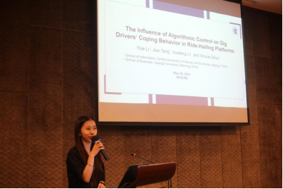 李宜泽同学的参会论文“The Influence of Algorithmic Control on Gig Drivers' Coping Behavior in Ride-hailing Platforms”探讨了算法控制对网约车司机应对行为的影响。具体而言,研究基于合法性过程模型开发了一个将感知算法控制与网约车司机的合规和变通行为联系起来的研究模型。研究使用12名与网约车司机的深度访谈数据改编了感知算法控制的量表,之后使用来自197名网约车司机的调查数据进行假设检验,最终发现感知算法控制对公平性和隐私判断有积极影响。公平性判断对合规行为有积极影响,隐私判断对变通行为有消极影响。研究讨论了这些发现的理论意义和管理启示。