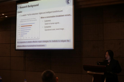 曾佳同学的参会论文“Chatbot with Resilience: The Impact of Repair Strategies on Customer Satisfaction in Conversational Breakdowns”探讨了在对话中断的场景下,聊天机器人的修复策略对客户满意度的影响模型。本文基于对话共识理论,探讨了三种修复策略(即直接响应、确认和关键词确认解释)对客户满意度的影响。同时,研究探究感知能力和客户参与这双重路径的中介效应。我们进一步引入了Al态度作为个体差异的变量来探索模型的边界条件。244份有效数据结果表明,关键词确认解释修复可以通过感知能力和客户参与来影响客户满意度。对AI抱有积极态度的客户,关键词确认和关键词确认解释的修复策略对客户满意度的正向效应得到增强。本文讨论了理论意义,为实践应用提供了建议。