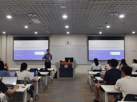 钟浩博士以“Empowering VC Investments with AI” 为题,基于创新创业研究中的经典理论,提出了一种基于强化学习的方法以辅助风险投资决策。其研究重点关注少数具有高潜力的公司,并致力于确保在企业各个发展阶段的投资分配相对均衡。与会师生就强化学习技术在财经领域的现有应用和发展前景展开了热烈讨论。